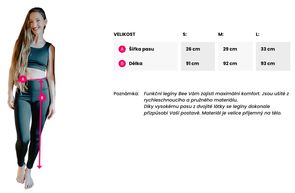 Funkční legíny Bee Vám zajistí maximální komfort. Jsou ušité z rychleschnoucího a pružného materiálu.