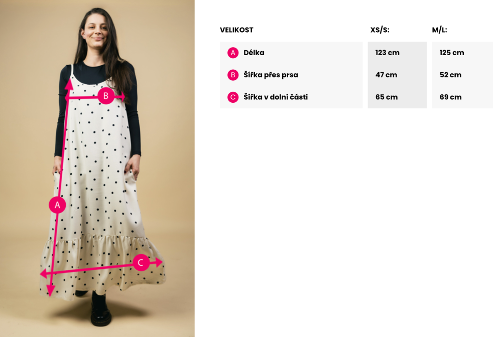 Midi šaty jsou ušité ze vzdušné Ecovero viskózy a dají se nosit na několik způsobů. Díky lehoučkému materiálu je užijete v létě a při chladnějším počasí je zkombinujete s tričkem a punčochami. Šaty mají áčkový střih a posunovací ramínka, která si každá upravíme jak potřebujeme. A nechybí ani dvě praktické, skryté kapsy. Více